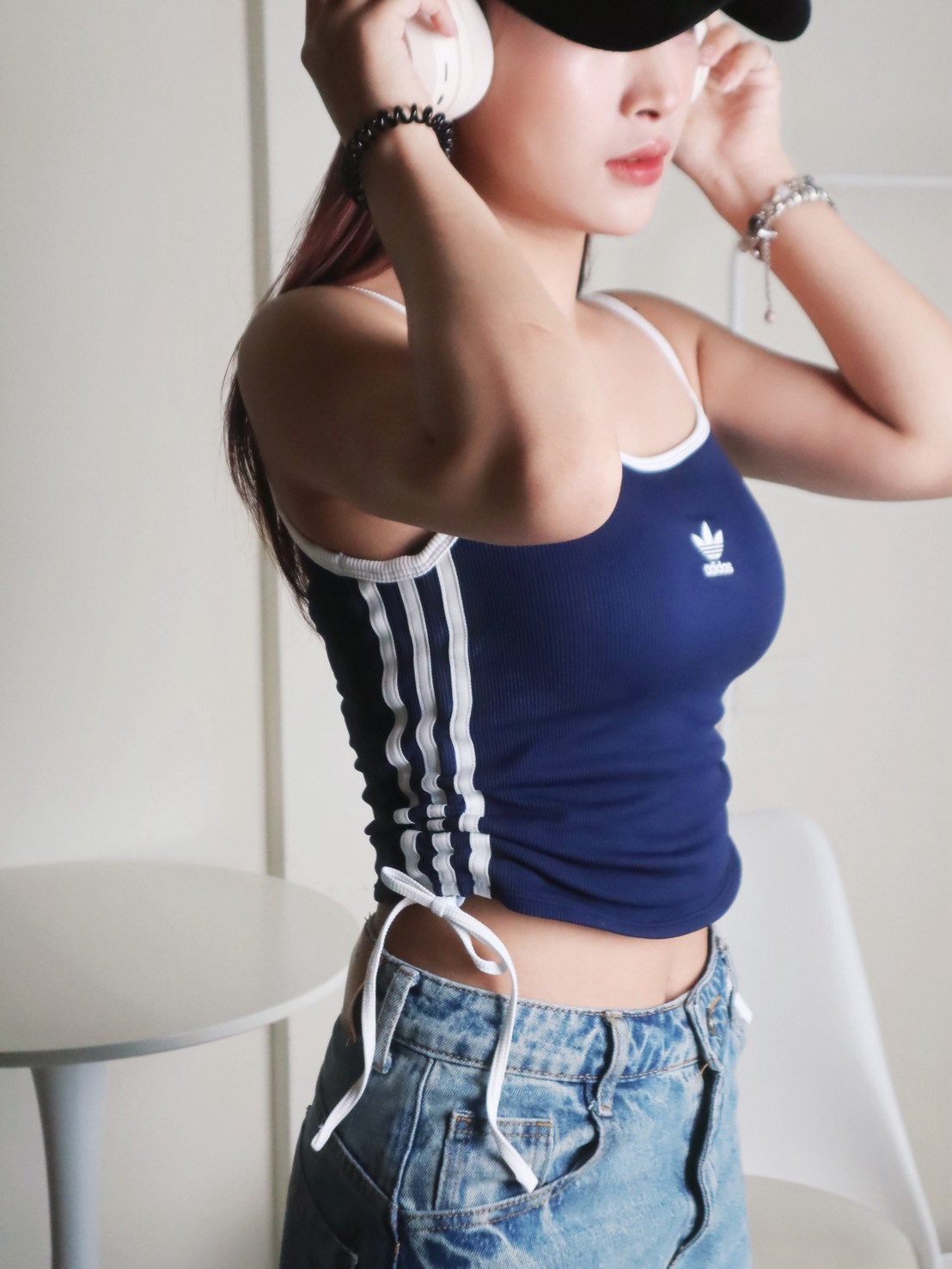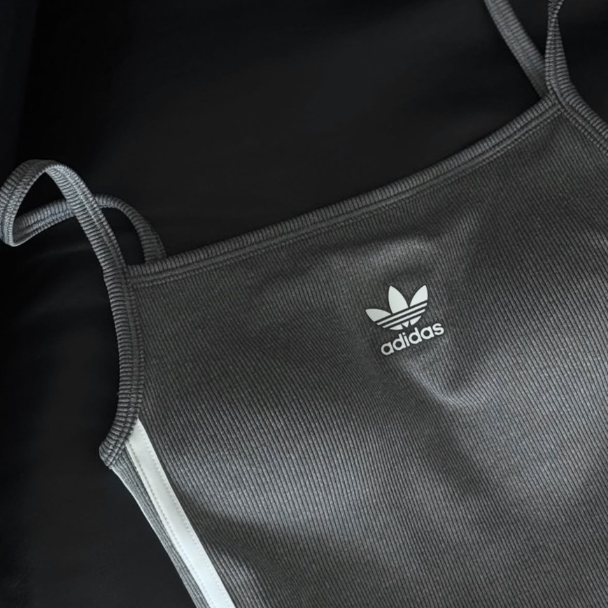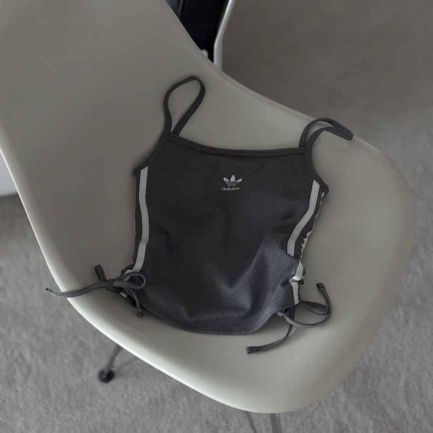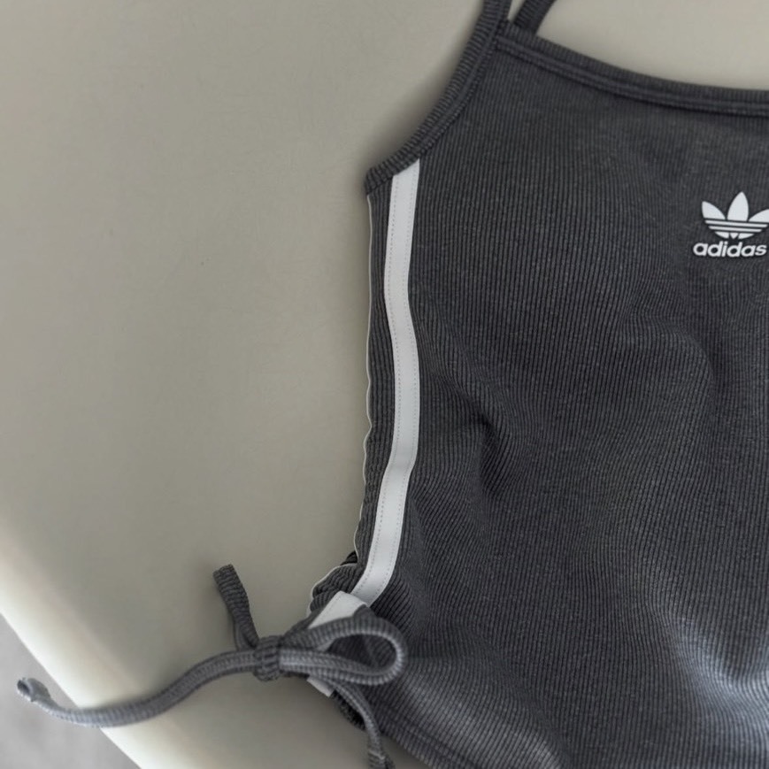 Adidas 抽繩背心 霧灰線條 深藍線條