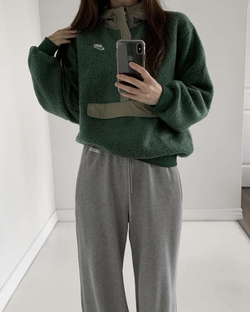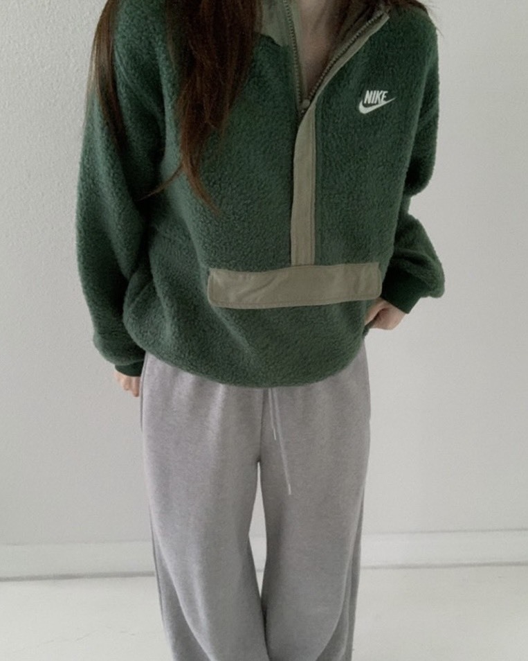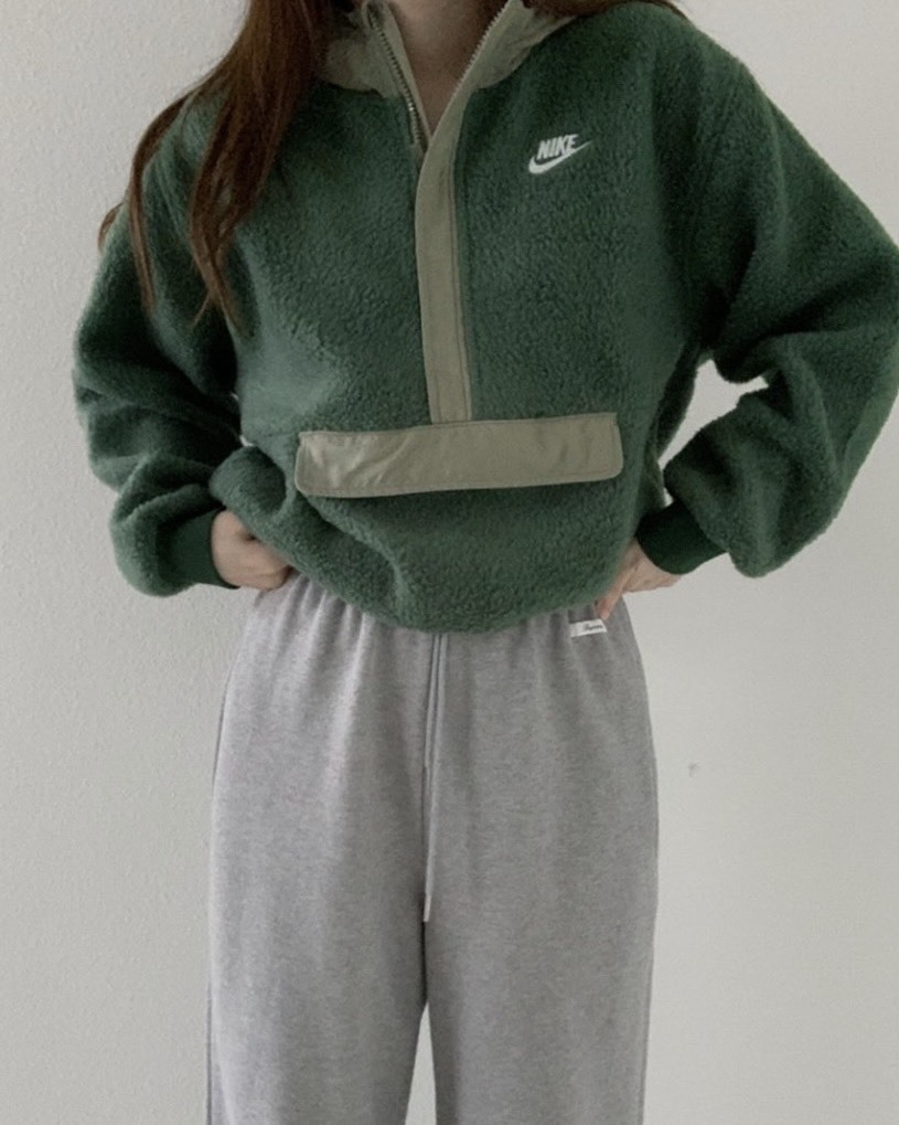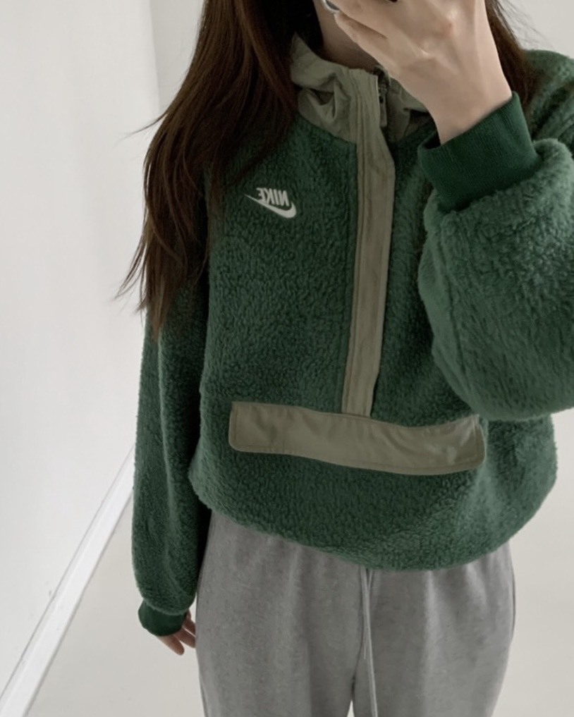 Nike 墨綠半拉鍊絨毛上衣